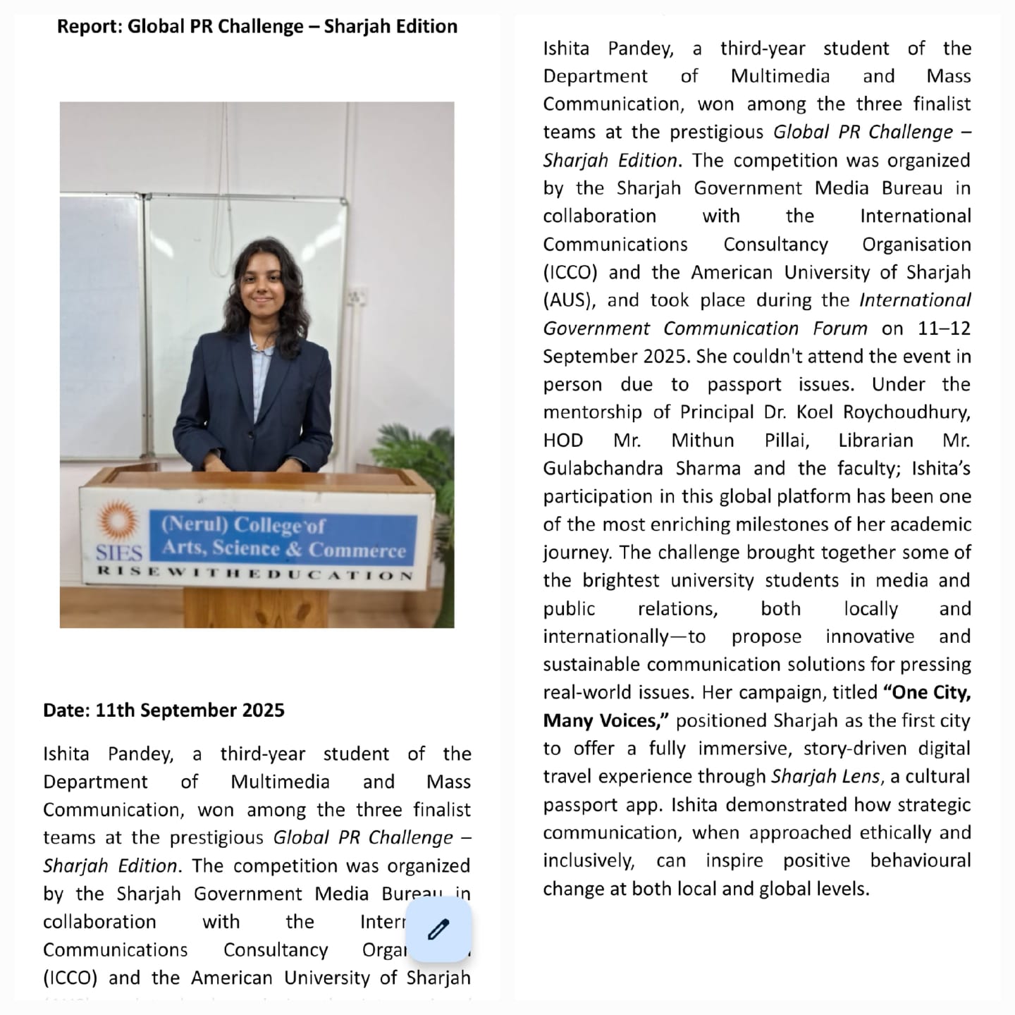 SIES(Nerul) College of Arts, Science and Commerce (Autonomous) We are dedicated to creating a better society by educating our future generations.