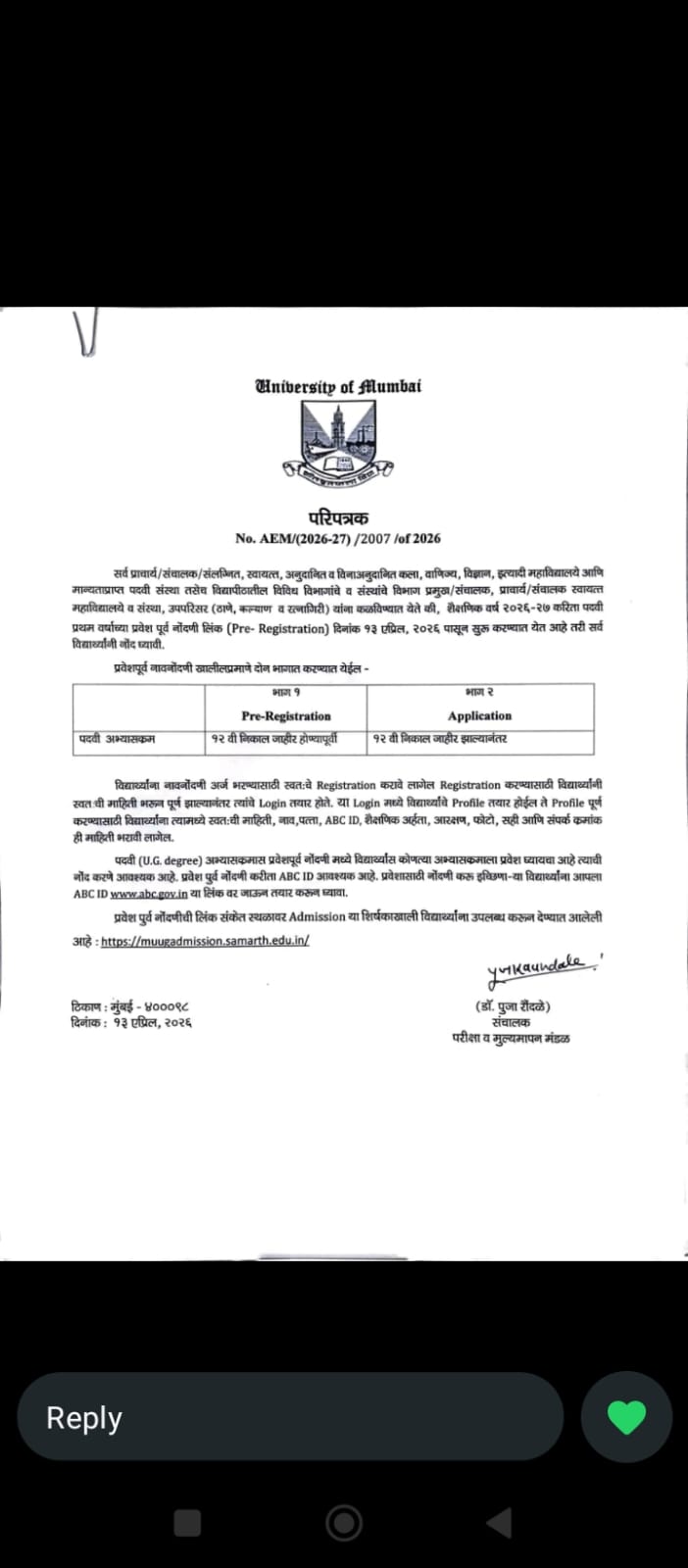 Contact: (022) 24 074 944 [Call strictly between 10.00 am to 3.00 pm Mon to Fri] Dr. Nina Roy Choudhury