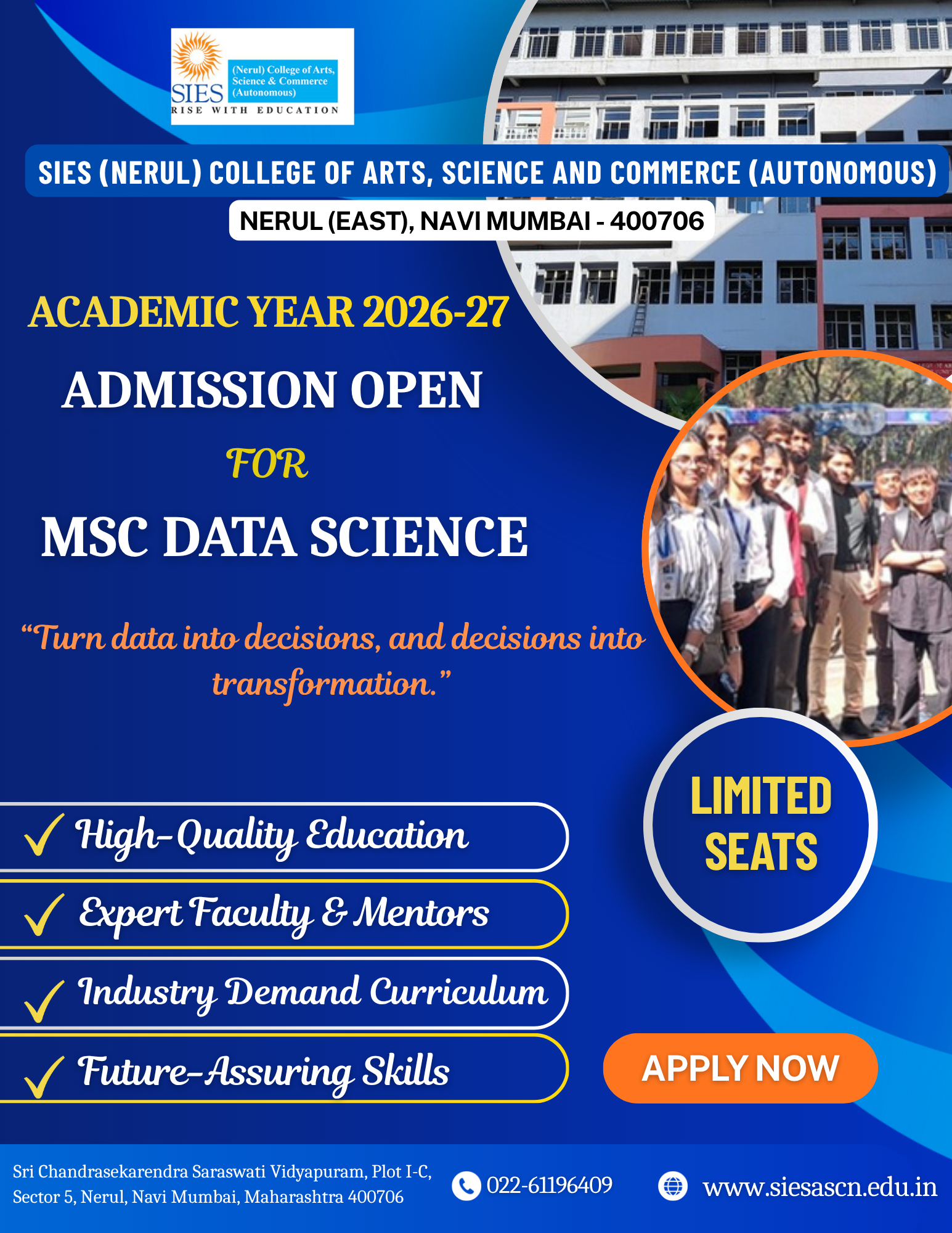 SIES(Nerul) College of Arts, Science and Commerce (Autonomous) We are dedicated to creating a better society by educating our future generations.